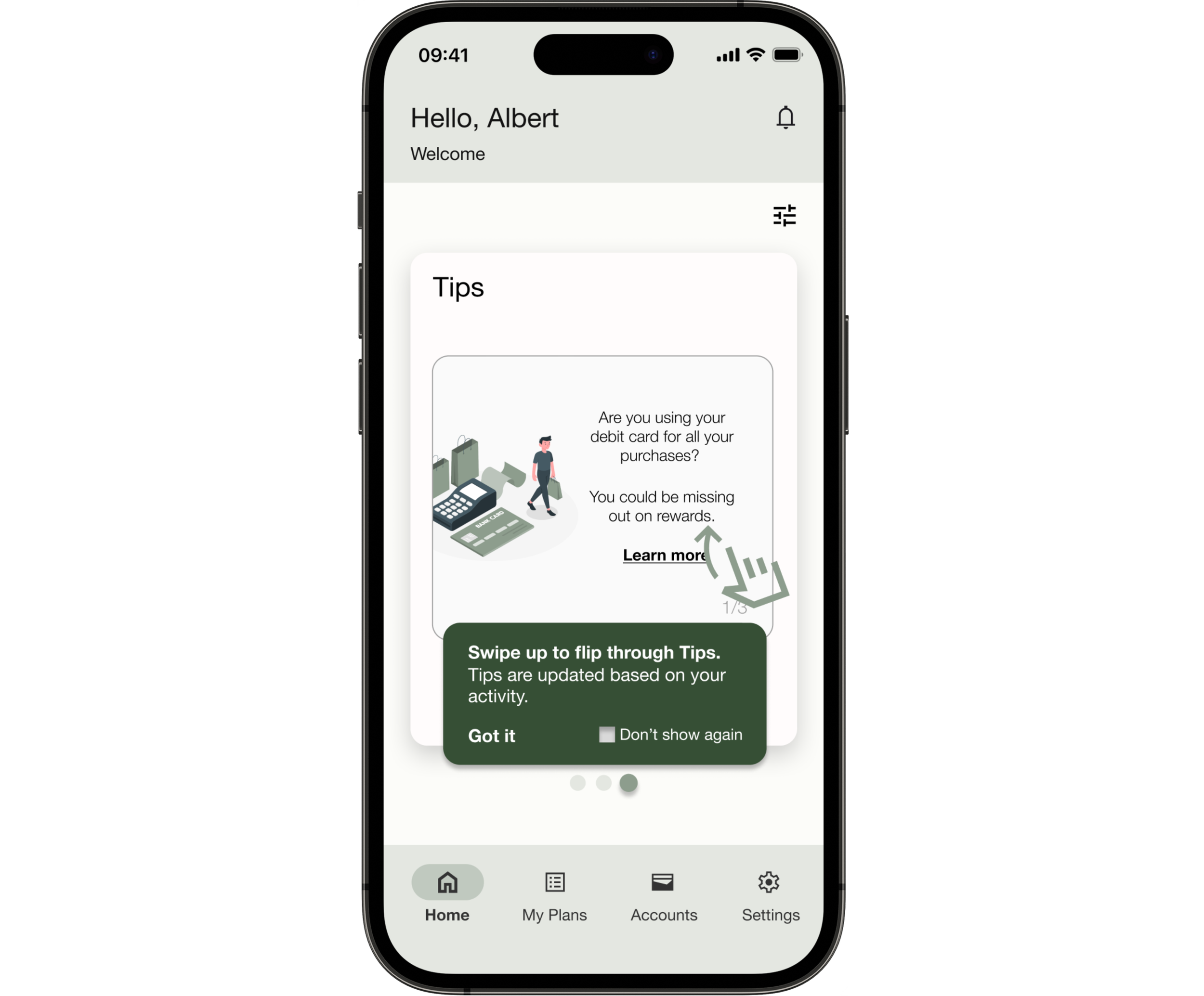 The Home Dashboard and My Plans pages, in particular, underwent extensive iterations based on user and peer feedback. For example, the flow of “adding a goal” was changed from a single forms page to multiple slides. The initial form design seemed lengthy so it was redesigned to avoid deterring users.