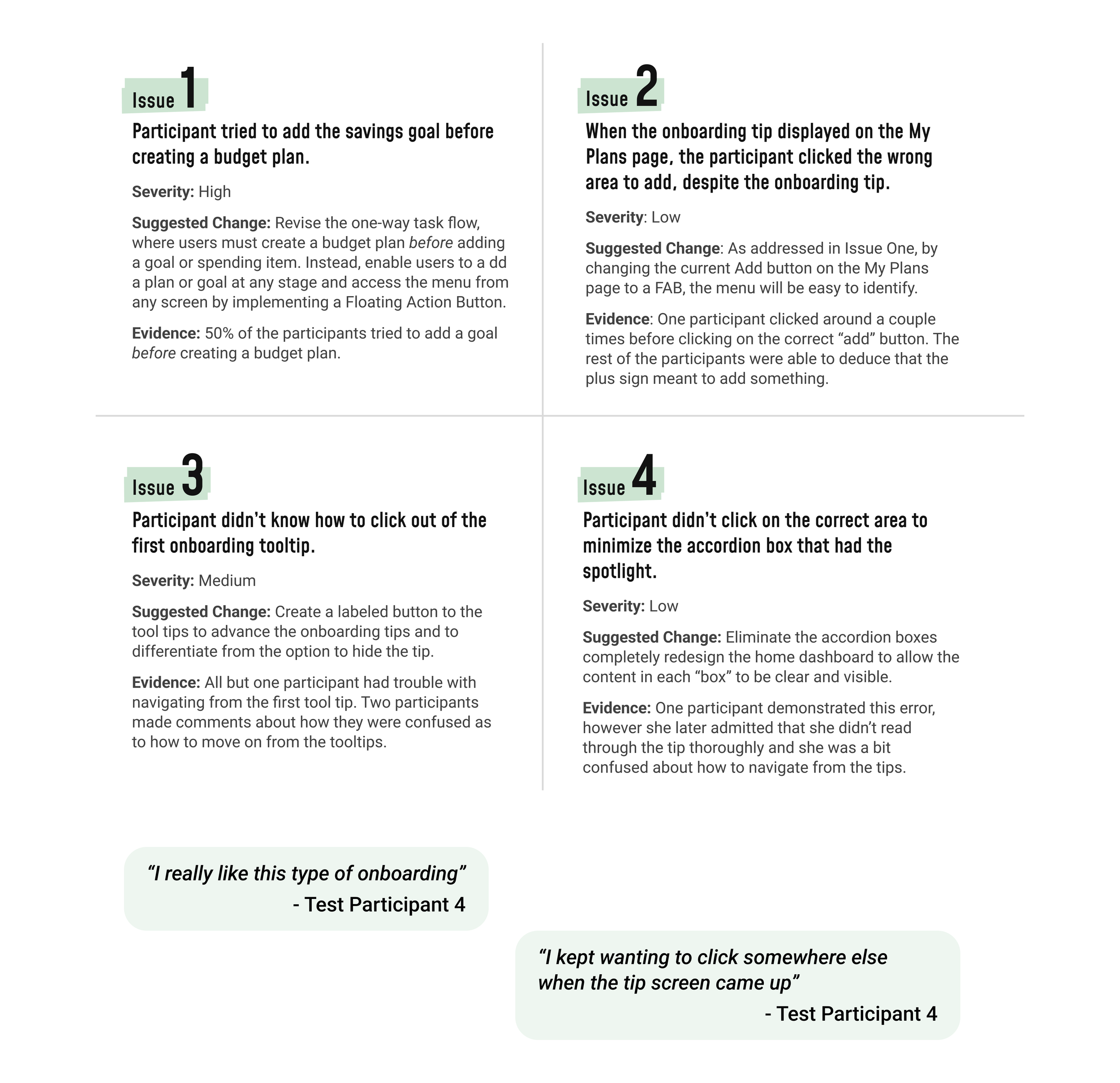Although there was confusion about how to navigate from the onboarding tool tips, by the end of the test session, all participants stated they preferred this type of onboarding when learning how to use a new app.