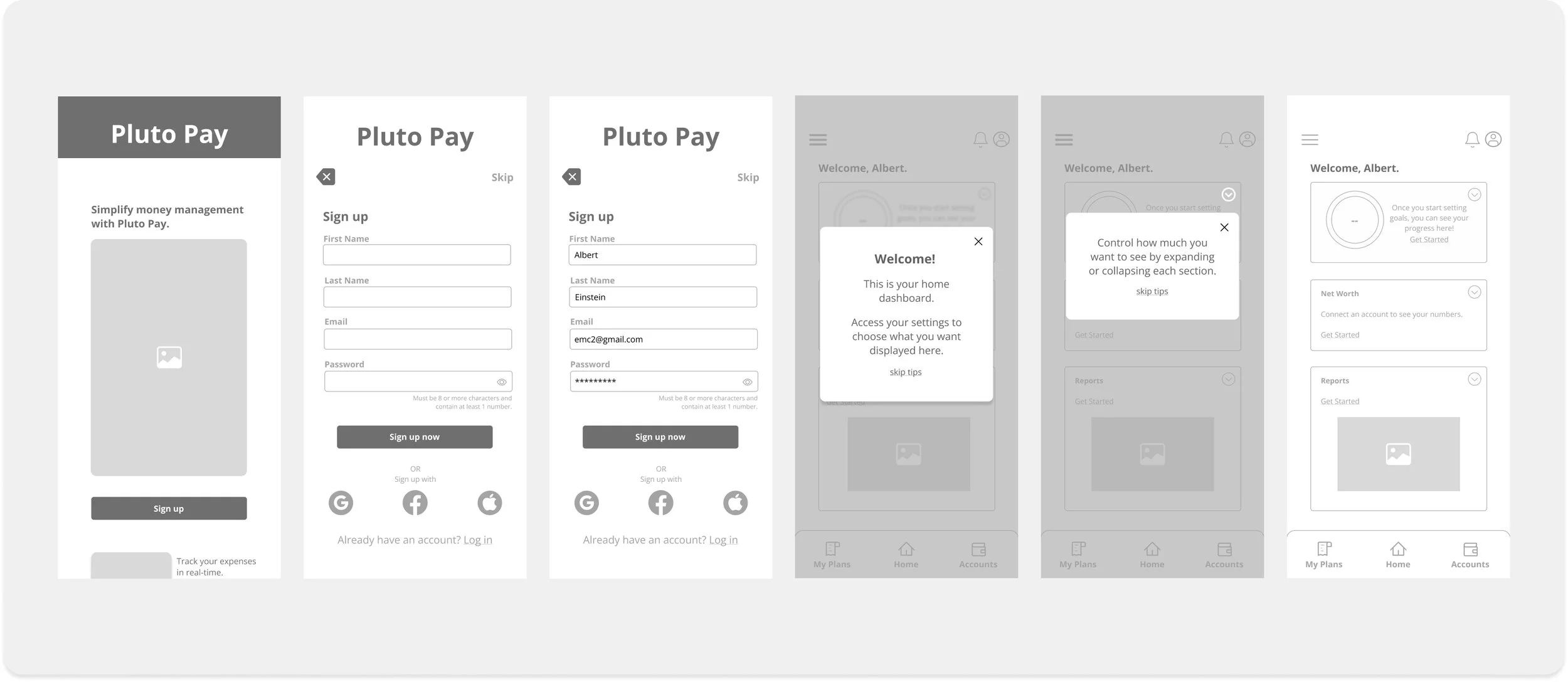 For the sake of brevity, only a couple of the initial user flows are showcased below.